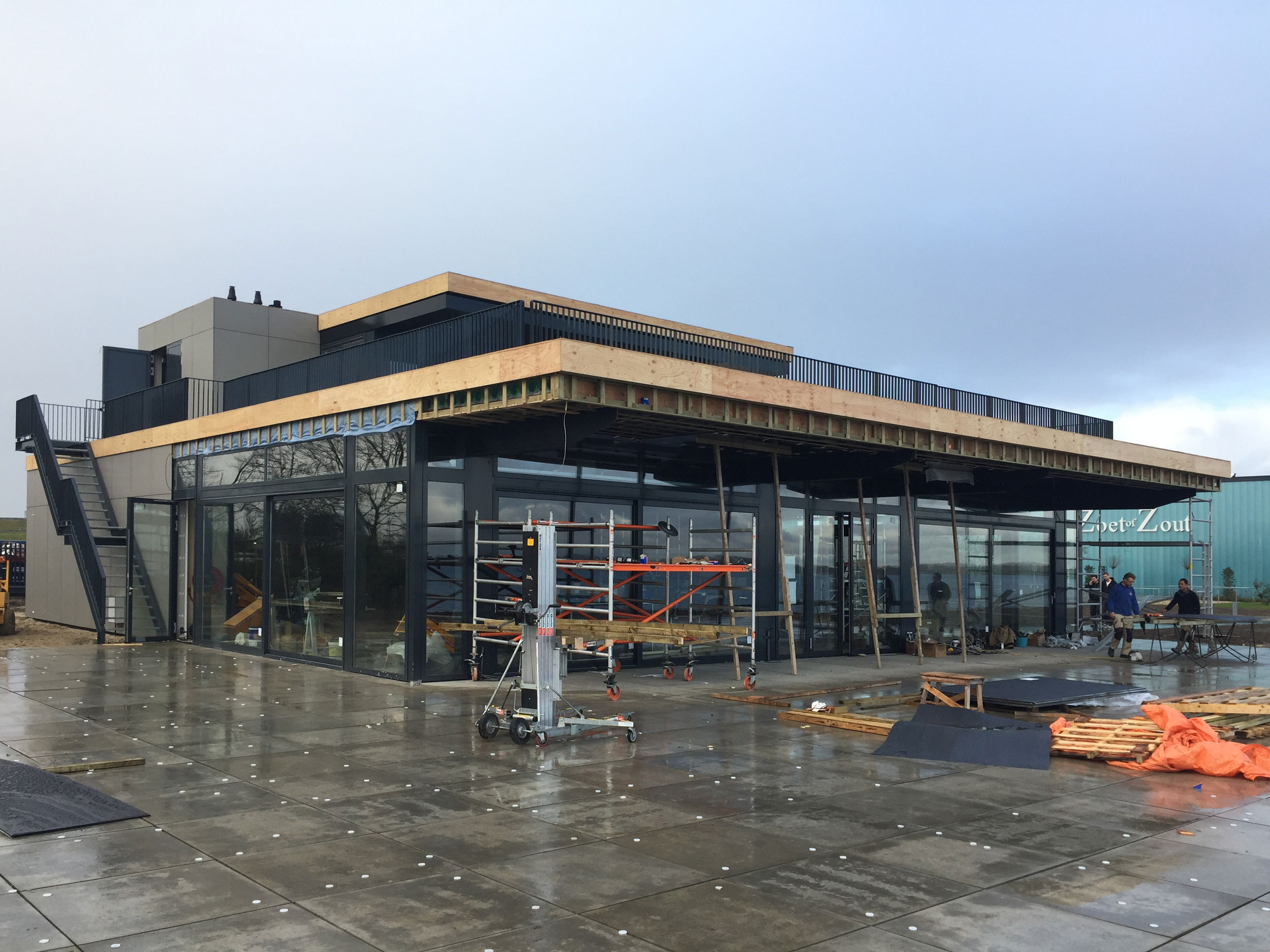 Stellendam - Nog maar twee weken te gaan tot de oplevering van het evenementenpaviljoen aan het Haringvliet.