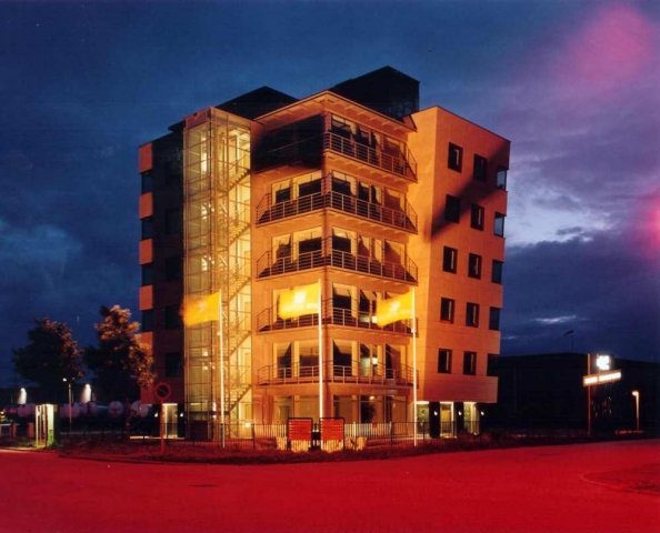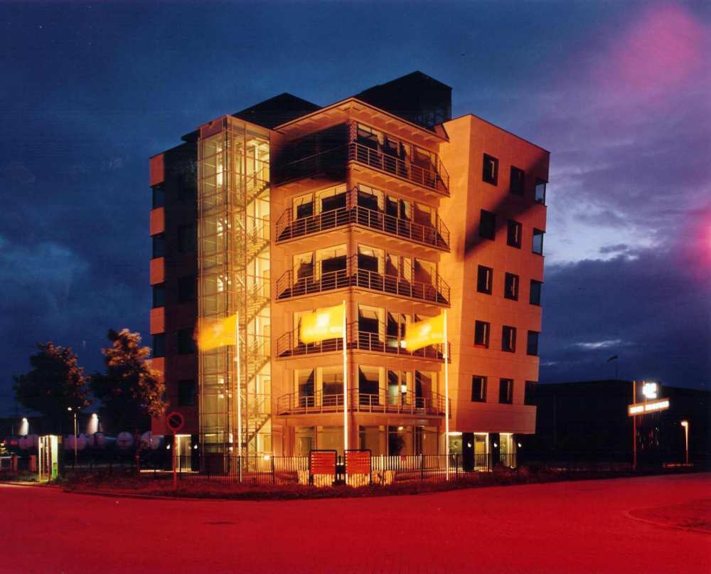 Daar er geen stedenbouwkundige randvoorwaarden waren en het terrein waar het kantoor moest komen vrij groot is, bleek het tamelijk lastig om aan te sluiten bij de bestaande bebouwing. In verband met de nabije opslag van gevaarlijke stoffen mocht er echter niet meer bebouwd worden dan 2000 m2. Zo kwam het idee van een gebouw dat fungeert als draaipunt voor zijn omgeving. Maar een rond gebouw was als plattegrond voor de kantoorverdiepingen niet wenselijk. Dus werd het grondvlak een vierkant waar vervolgens is geprobeerd de nadruk op de hoeken weg te nemen.