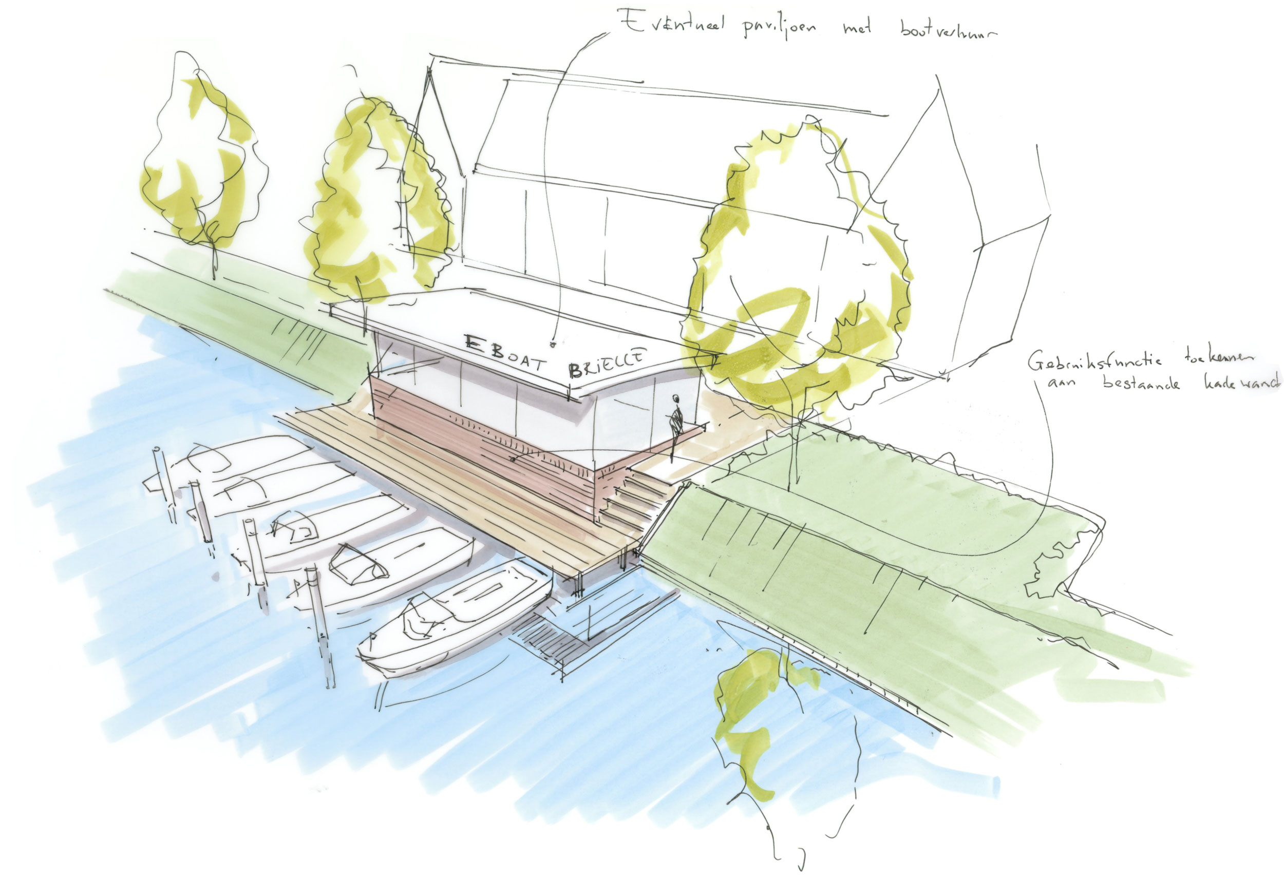 Ten zuiden van het Arsenaal is een reeds bestaande stenen uitbouw van de kade. Deze leent zich uitstekend voor een nieuwe functie, zoals sloepenverhuur. Wanneer er minder vaste ligplaatsen zijn op het water, en er meer ruimte is voor dagbezoekers en bootverhuur, kunnen meer mensen Brielle vanaf het water beleven.