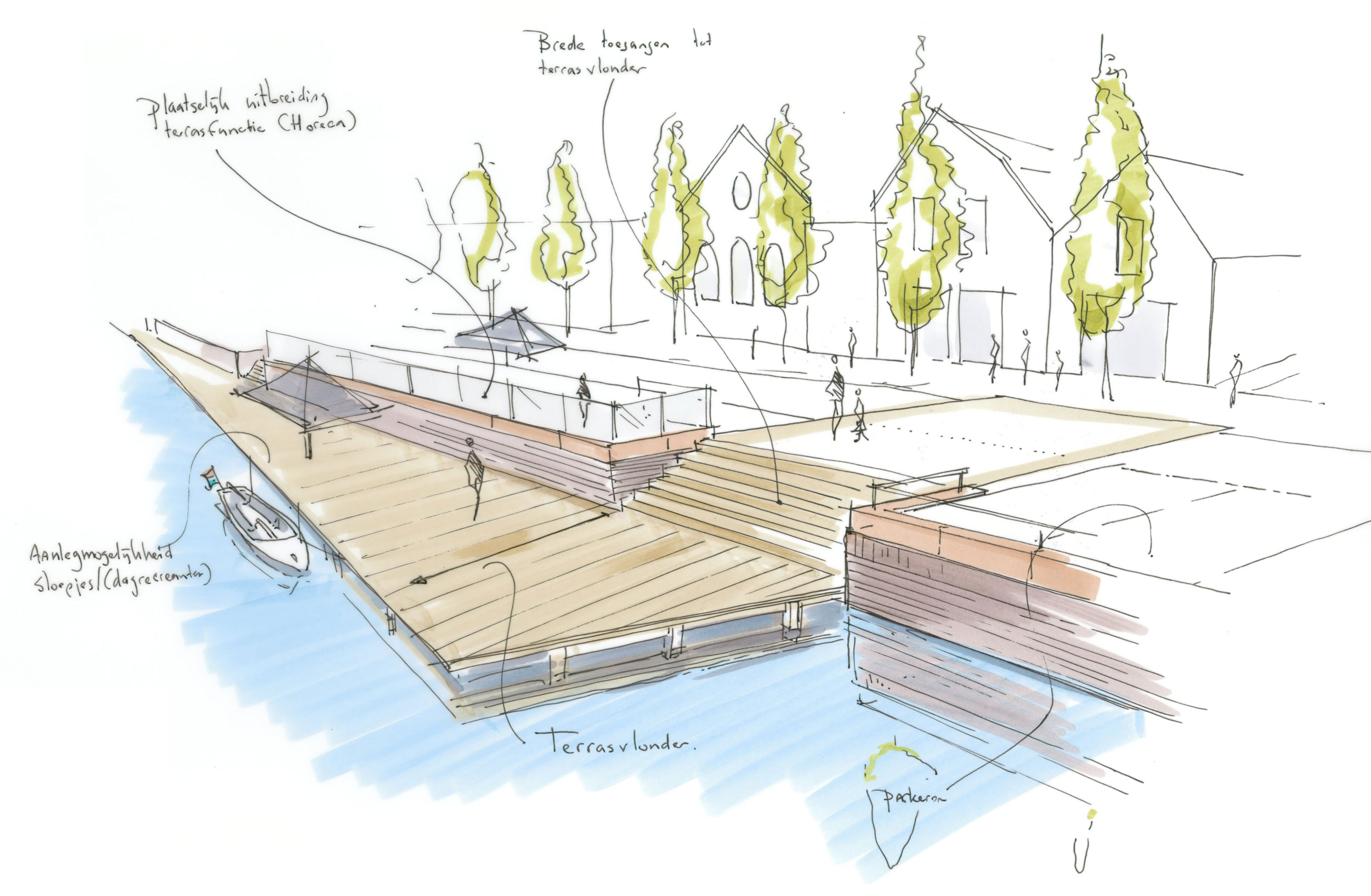 Door de kade uit te breiden met een vlonder, betrekken we de beleving van het water weer bij de stad. Deze vlonder is voor iedereen toegankelijk en zal de aantrekkingskracht van de Turfkade ten goede komen. Niet voor niets gaan we ’s zomers bij voorkeur aan het water zitten, op een bankje, terrasje of zelfs op de kade met de voeten in het water. De vlonder is zowel wandelpromenade, als plek om even tot rust te komen en van het uitzicht te genieten. De vlonder krijgt brede toegangstrappen, zogenoemde ‘wasstraten’. Aan de vlonder kunnen mensen tijdelijk hun bootjes aanleggen voor een bezoek aan de Turfkade.