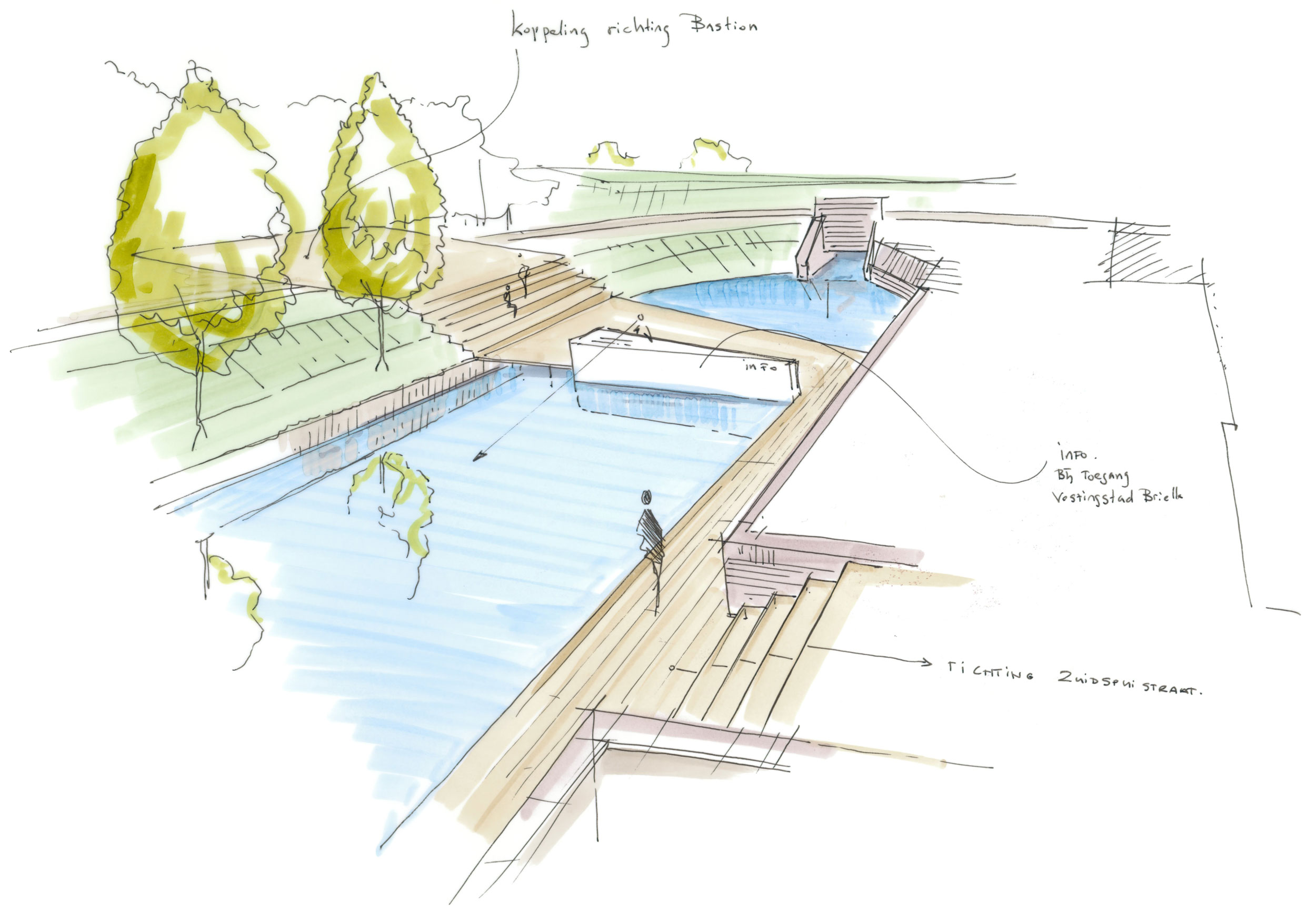 Brielle, een vesting- en handelsstad die haar bestaan dankt aan het water, zou het water weer als onderscheidende kwaliteit moeten omarmen, en de haven, de kades, en het water weer een hoofdrol moeten laten spelen. Water met een historisch karakter is namelijk een belangrijke sfeerbepaler voor de stad. Bruggen en kades zijn een onmisbaar onderdeel van het stedelijk erfgoed en refereren aan de geschiedenis van bebouwing, bevolking en economische groei. Steden met water in en rond hun centrum, hebben altijd een streepje voor. Door het water weer te erkennen, te gebruiken en tot leven te wekken, keert de stad terug naar haar oorsprong. Dat maakt een stad levend zonder de geschiedenis geweld aan te doen.