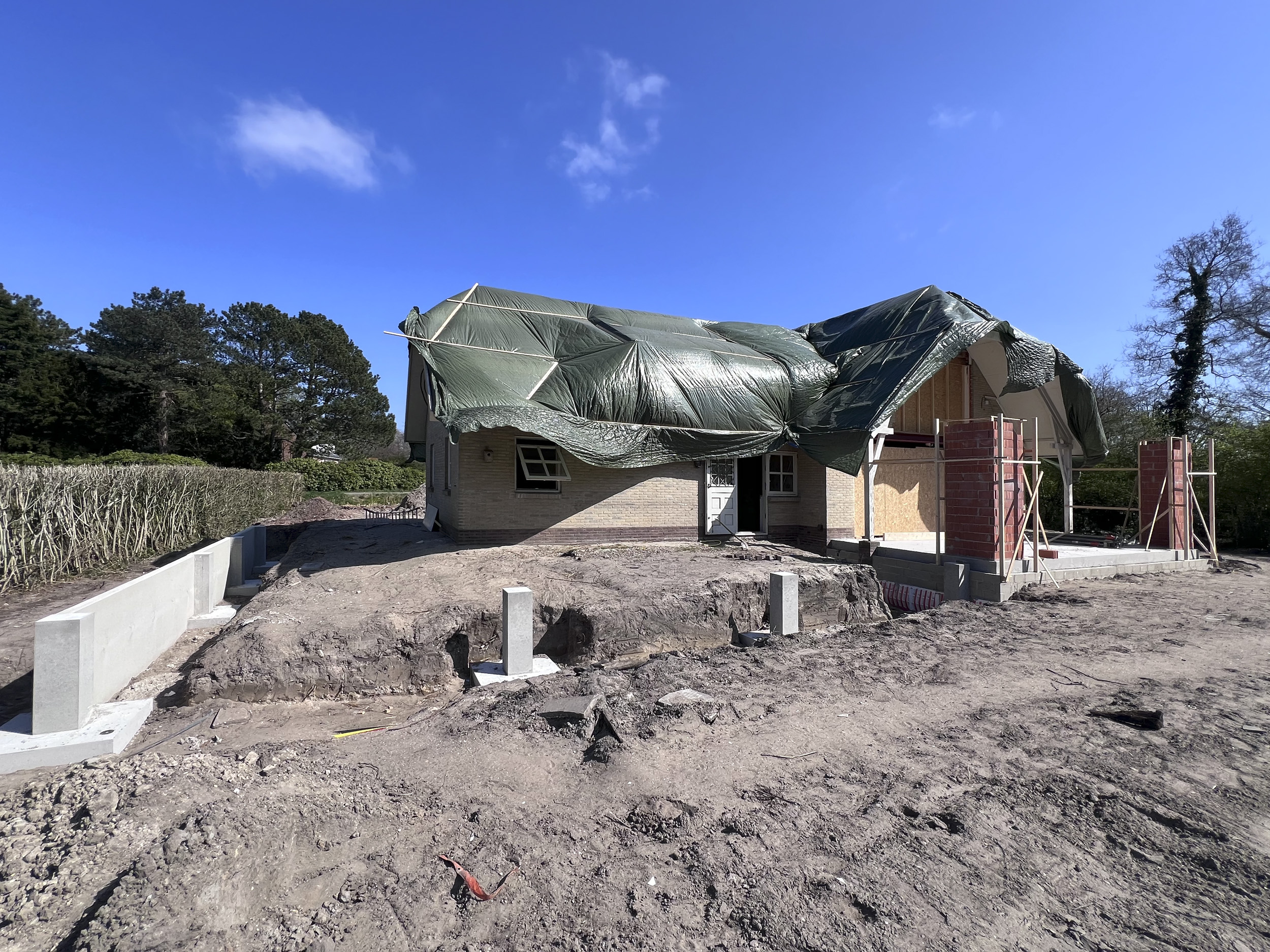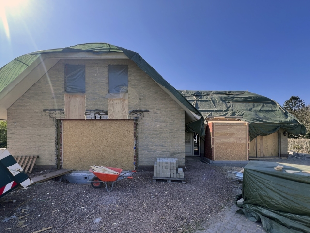 Oostvoorne - De werkzaamheden van een ingrijpende verbouwing aan een rietgedekte villa vorderen gestaag. Aannemer en installateurs zijn momenteel volop bezig op de bouwplaats en zorgen voor flinke vooruitgang, zowel in het casco als in de technische installaties. Waar voorheen het kenmerkende rieten dak het huis zijn warme uitstraling gaf, ligt de woning er nu tijdelijk kaal en wat triest bij. Toch is deze fase nodig om straks ruimte te maken voor het vernieuwde rietdek, dat het karakter van de woning in ere zal herstellen én versterken. Aan de achterzijde van de woning zijn de contouren van de uitbreiding al goed zichtbaar. Deze vergroting zorgt straks voor meer ruimte en comfort, passend bij de wensen van de bewoners én in lijn met de bestaande architectuur. Klik hier voor het beoogde eindresultaat.