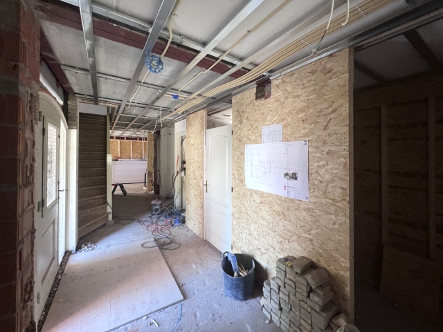 Waar voorheen het kenmerkende rieten dak het huis zijn warme uitstraling gaf, ligt de woning er nu tijdelijk kaal en wat triest bij. Toch is deze fase nodig om straks ruimte te maken voor het vernieuwde rietdek, dat het karakter van de woning in ere zal herstellen én versterken.