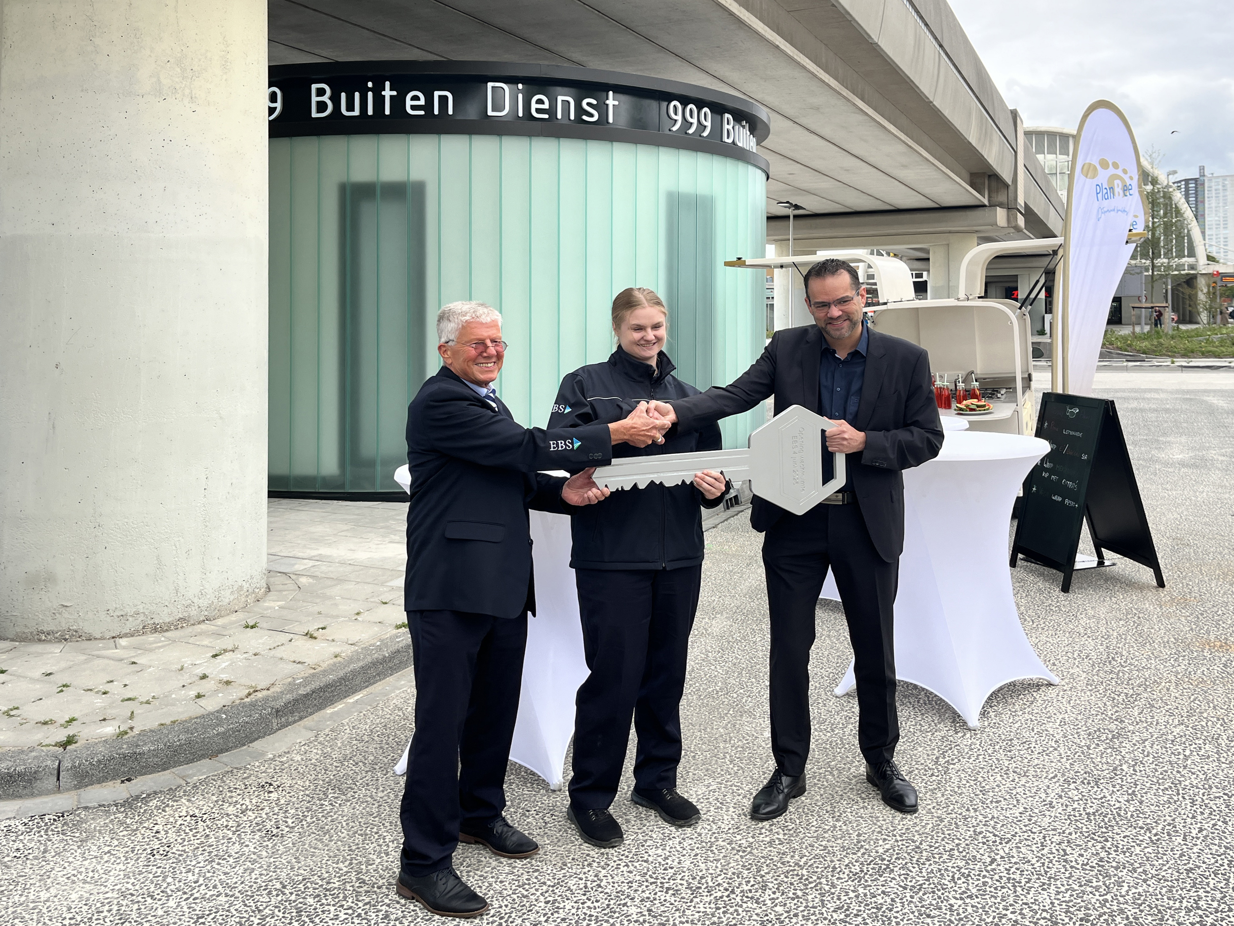 De feestelijke opening vond plaats door Wethouder Hottentot door het overhandigen van een grote sleutel aan de jongste buschauffeuse van EBS. Naast de wethouder waren genodigden aanwezig van Heijmans (aannemer busplein en buitengebied), Plan-Bee (bouwkundig aannemer wachtruimte), Brink (bouwmanager), diverse gebruikers (buschauffeurs van EBS) en HDK architecten.
