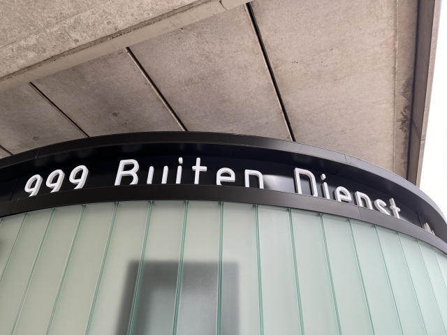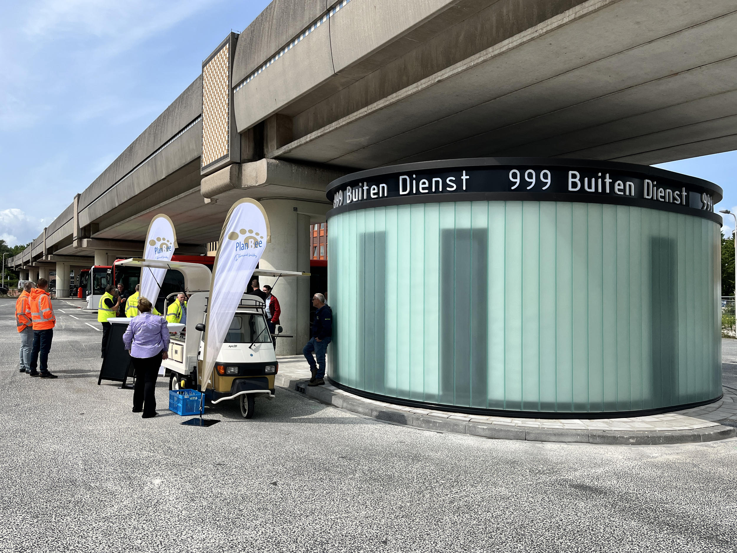 Ook de aanwezigen waren erg enthousiast over de belettering '999 Buiten dienst' langs de dakrand van de wachtruimte. Daarbij strookt de huidige verschijningsvorm met de eerste impressies van het plan.