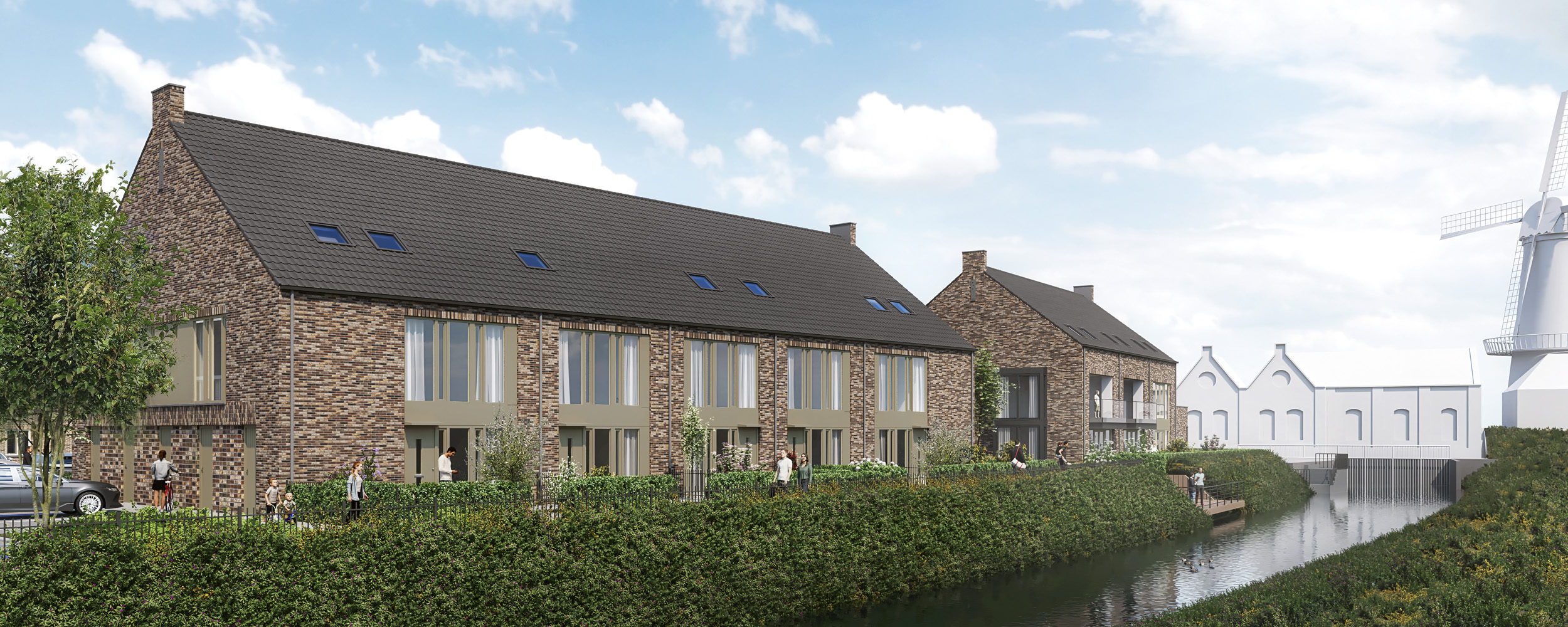 In de architectuur zoeken we bewust aansluiting bij de bestaande Molenwei. Niet door te kopiëren, maar door te vertalen. De nieuwe bebouwing is een knipoog naar de huidige wijk, met mooie vertalingen van de Delftse School naar deze tijd.