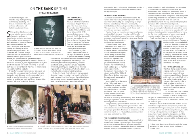 Han de Kluijver - This architect and glass artist notes the many challenges facing contemporary glass today, but believes investment in the future and close collaboration will facilitate a sustainable future.
