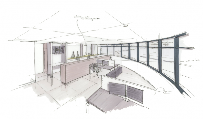 Botlek Rt - Door een herstructurering van een braakliggend terrein, wordt een inritsituatie voor een terminal gewijzigd. Hiertoe ontstaan diverse nieuwe rijroutes voor vrachtverkeer, waarop een nieuwe portiersloge zicht dient te hebben. De portier houdt immers toezicht op alle bezoekers die het terrein oprijden. Veel uitzicht over het terrein was dan ook één van de wensen.