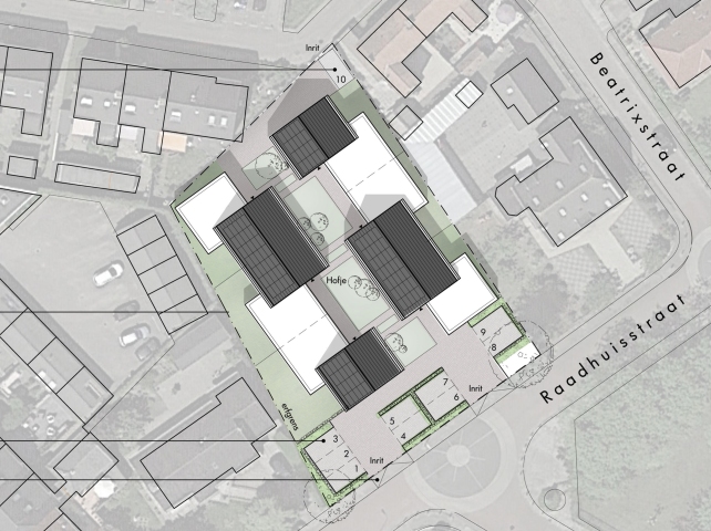 Het bouwplan is gelegen aan de Raadhuisstraat te Zuidland. De locatie betrof een braakliggend kavel, waarop de mogelijkheid bestond om een enkel woonhuis te realiseren. Door middel van een bestemmingswijziging bleek het mogelijk om, o.b.v. de bestaande woonbestemming, het aantal woningen te vermeerderen tot zes. HDK architecten is bij het plan betrokken vanaf de schetsfase, vergunningsaanvraag en bestemmingswijziging, bouwvoorbereiding, uitvoering en verkoopfase.