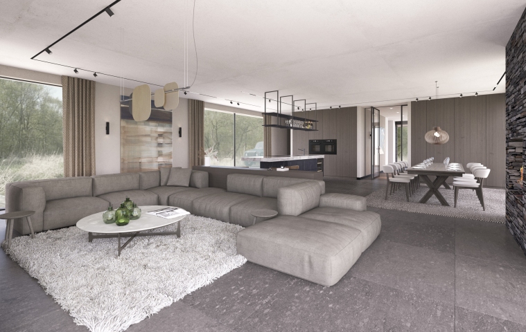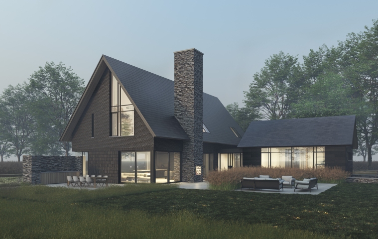 Het ontwerp van de nieuwe woning refereert aan de karakteristieke schuren van dit voormalig boeren landschap, met rijke detaillering en een zorgvuldig gekozen materiaalgebruik. Het volume bestaat uit één laag met een strak vormgegeven kap, afgewerkt met natuurlijke en duurzame materialen zoals houten gevelbekleding en houten kozijnen. Deze materialen dragen niet alleen bij aan een tijdloze uitstraling, maar versterken ook de verbinding met de omliggende natuur.