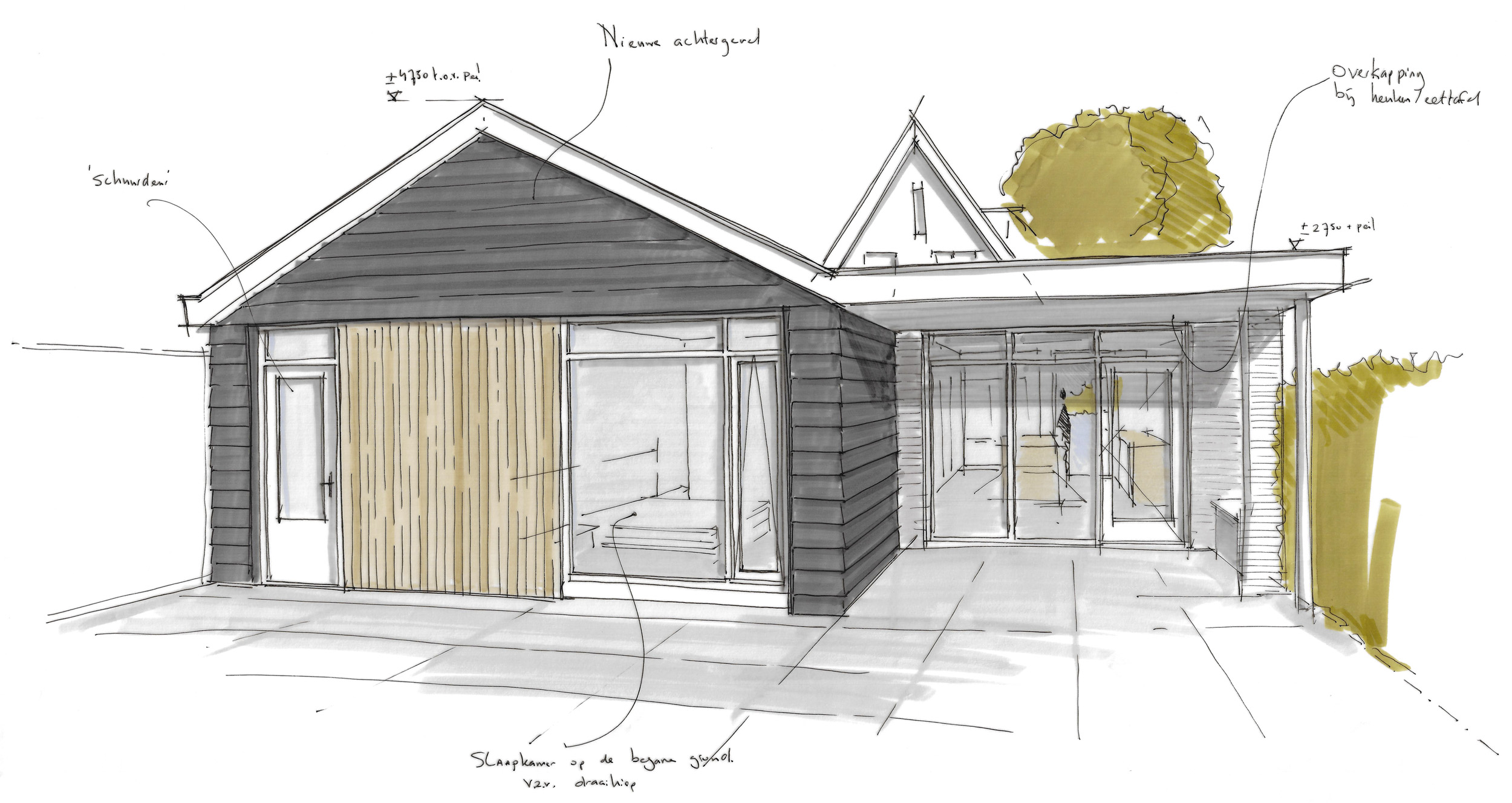 Een karakteristieke jaren ’30 woning ondergaat een complete transformatie. De bestaande berging/garage op de begane grond maakt plaats voor een ruime slaapkamer met badkamer. Hierdoor ontstaat er niet alleen extra wooncomfort, maar ook de mogelijkheid om levensloopbestendig te wonen.