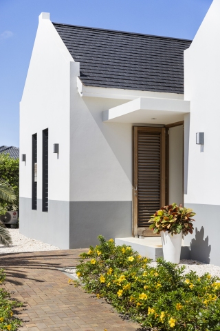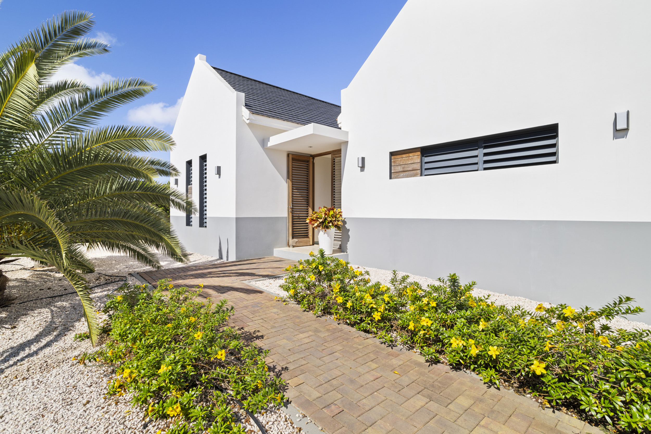In de architypische vorm van het geschakelde volume is de knipoog naar de karakteristieke slavenhuisjes op het eiland duidelijk zichtbaar.