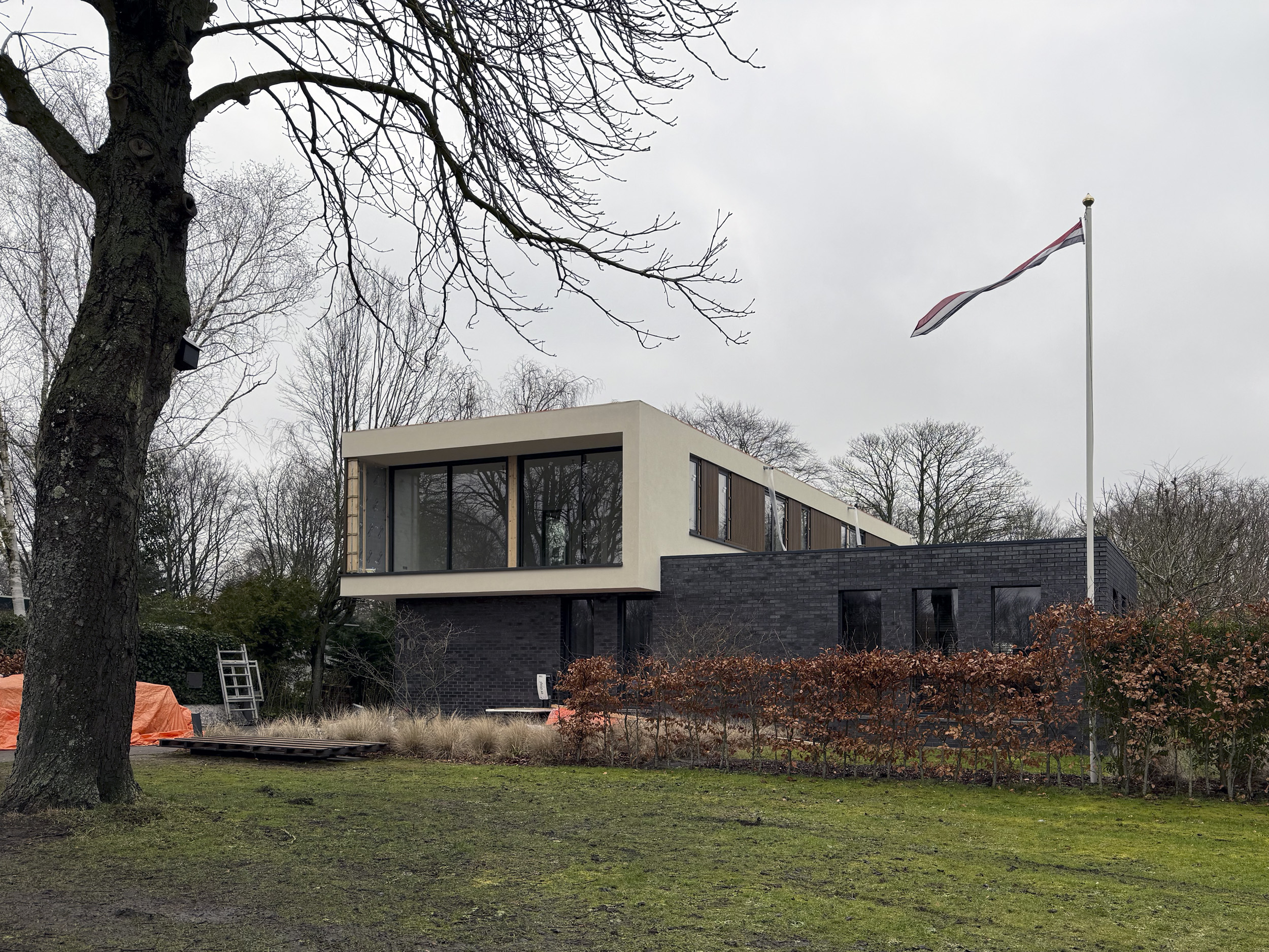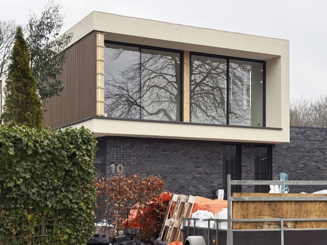 Oostvoorne - Bij het project aan de Orchislaan zijn de steigers verwijderd. Daarmee is de optopping van een modern woonhuis nu volledig zichtbaar in het straatbeeld.