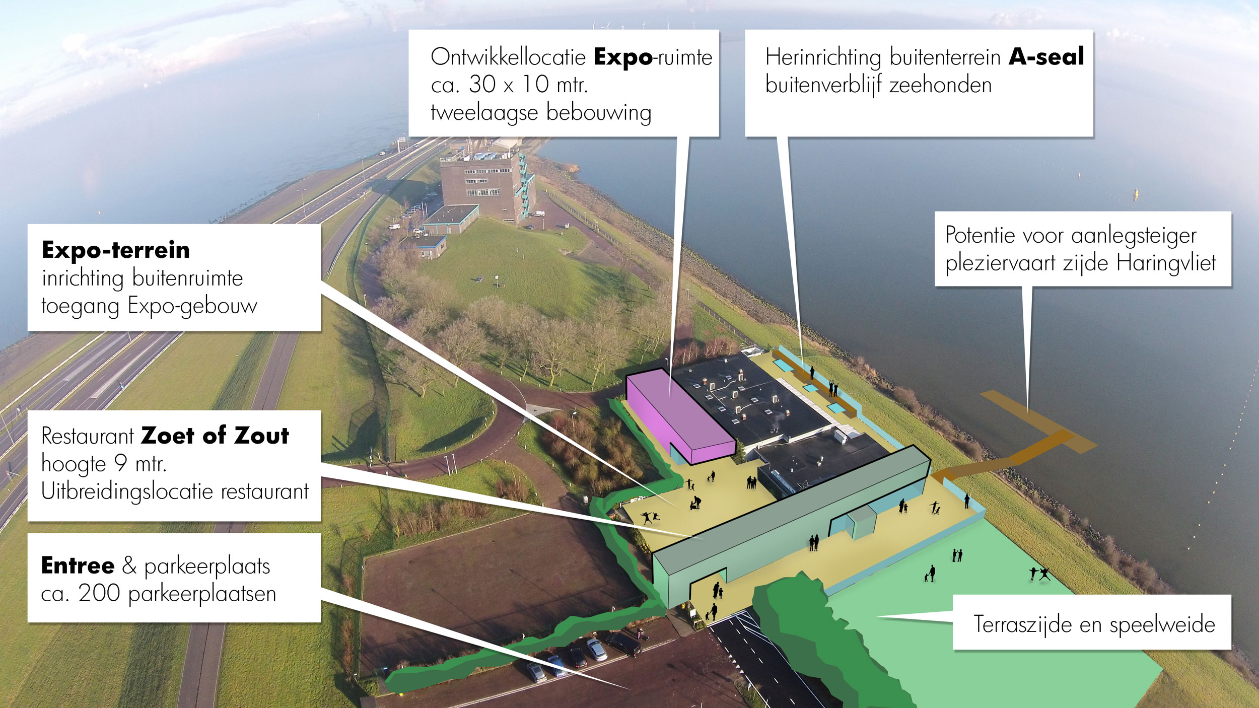 Restaurant Zoet of Zout wordt uitgebreid, evenals de buitenopvang van zeezoogdierencentrum A-Seal en het terras aan de waterzijde. Deze locatie - die de geschiedenis van de Deltawerken met zich meedraagt en waar de visafslag op een steenworp afstand ligt - heeft alles in zich om uit te groeien tot een bijzondere bezienswaardigheid aan het Haringvliet.